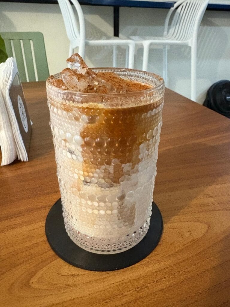 Pra variar, tomei café gelado, mas me chamou atenção um drink bem típico: Horchata Latte.