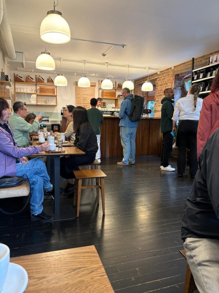 A cafeteria do Tim vende exclusivamente café. Não há quitutes, pães ou acompanhamentos. Para nós, brasileiros — que frequentemente associamos o café a algo para beliscar — pode ser impactante no primeiro momento. Mas a proposta ali é clara: o café é o protagonista absoluto.
